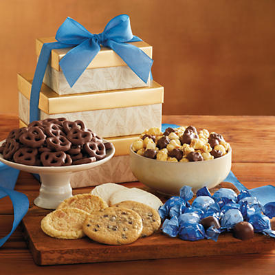 Item description: This Bakery product is by Harry & David - This distinctive tower is filled with gourmet cakes, cookies, and swirls handcrafted in our own bakery by a team of artisan bakers. Our bakers have developed recipes over time that produce exquisite treats such as honey-drenched baklava and a cinnamon swirl that, warmed up, fills the air with the sweet scent of cinnamon and bread. Each detail in this tower adds up to a heartwarming gift, topped with a hand-tied bow. Learn More