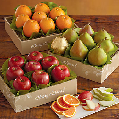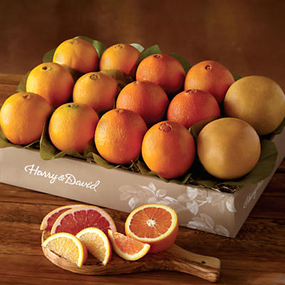 Item description: This Pears and Fruit product is by Harry & David - Citrus enthusiasts can't get enough of our sun-ripened and delicious fruit, which is why we offer three trays of navel oranges. In this gourmet fruit delivery you'll find a generous supply of this seedless and thin-skinned citrus offers ample opportunities to enjoy a sweet and wholesome snack and to share them with friends and family. Our navel oranges are always picked at the peak of their season, for the juiciest slices of sunshine. We recommend trying navels paired with nuts, olives, and cheese.