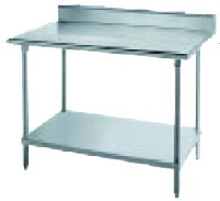 Item description: This Work Tables with 5 Inch Backsplash product is by Advance Tabco - Advance Tabco KAG-309 108-in Work Table w/ 16/430 Stainless Top & 5-in Splash, 30-in W