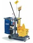 Item description: This Utility Carts product is by Carlisle - Carlisle JC194514 Janitorial Cart w/ (3) Shelves & Bucket / Wringer Platform, Blue